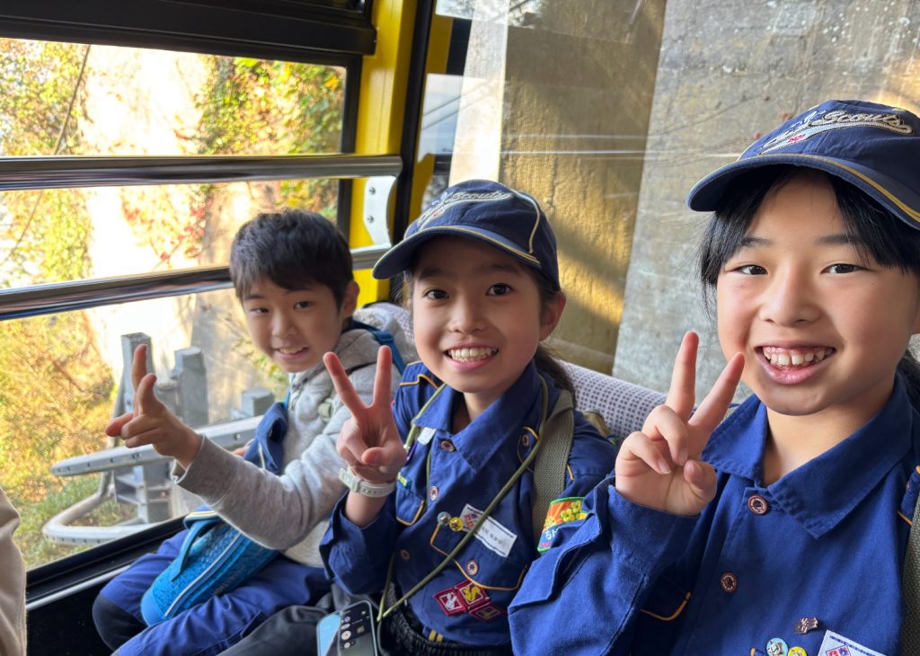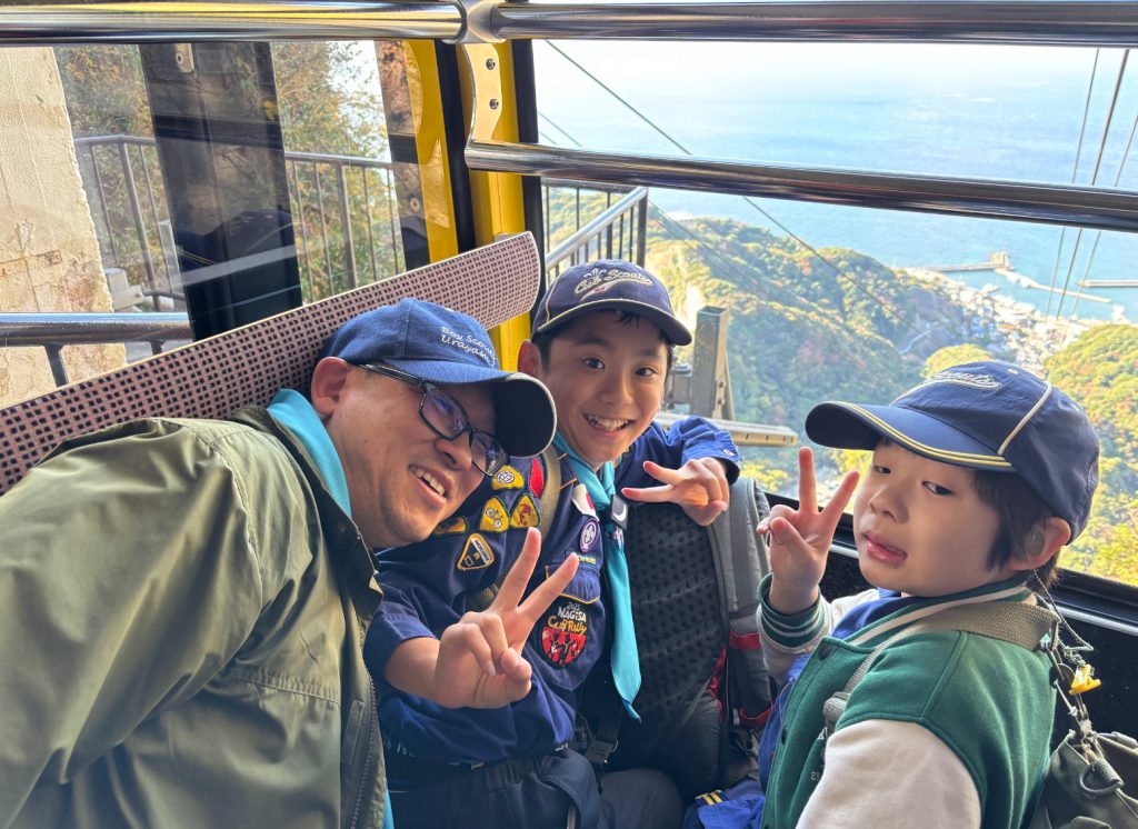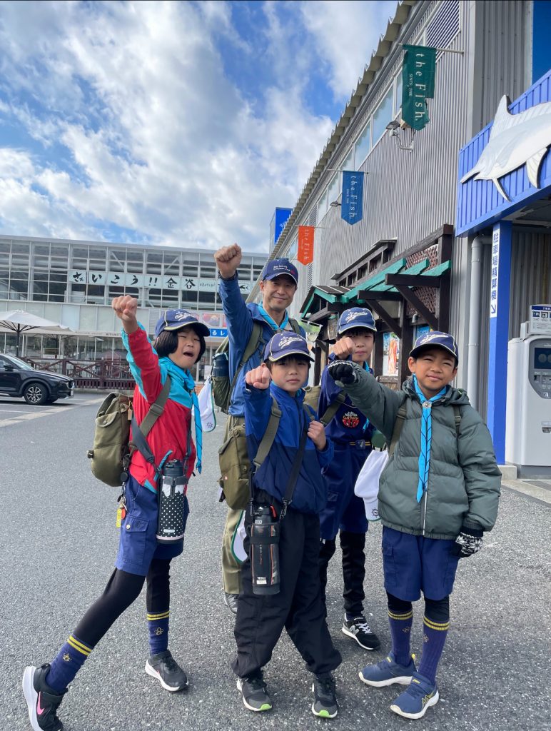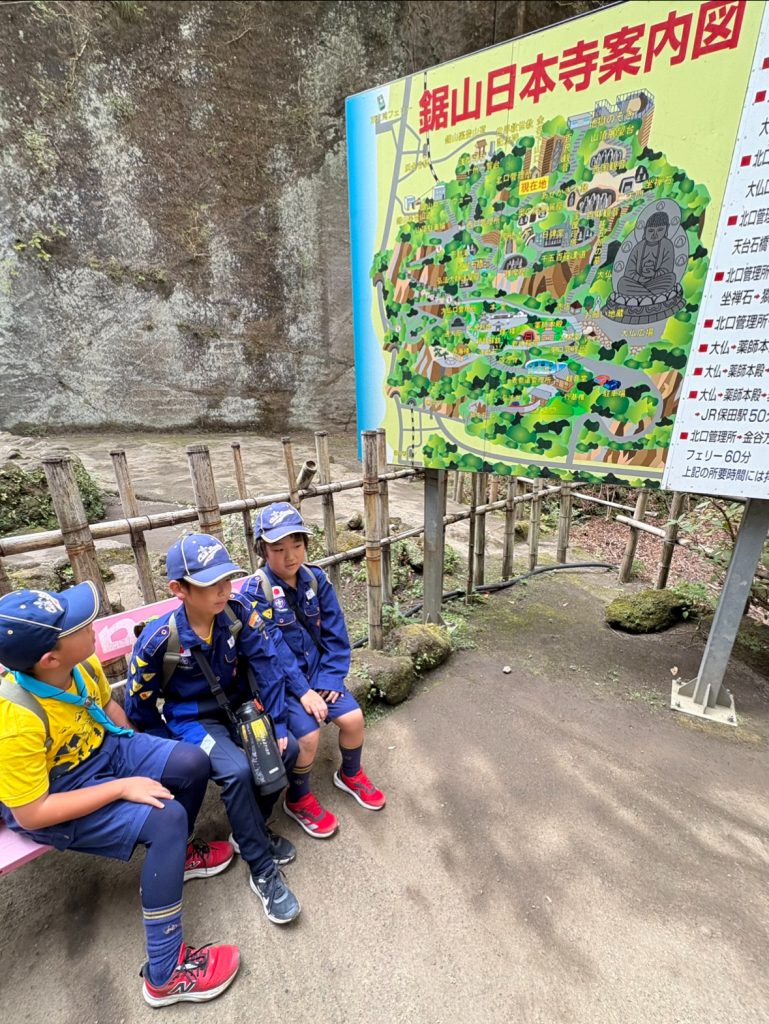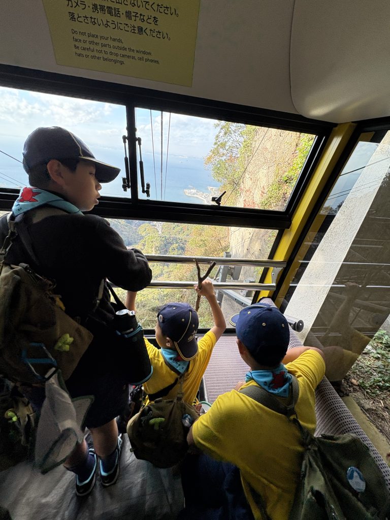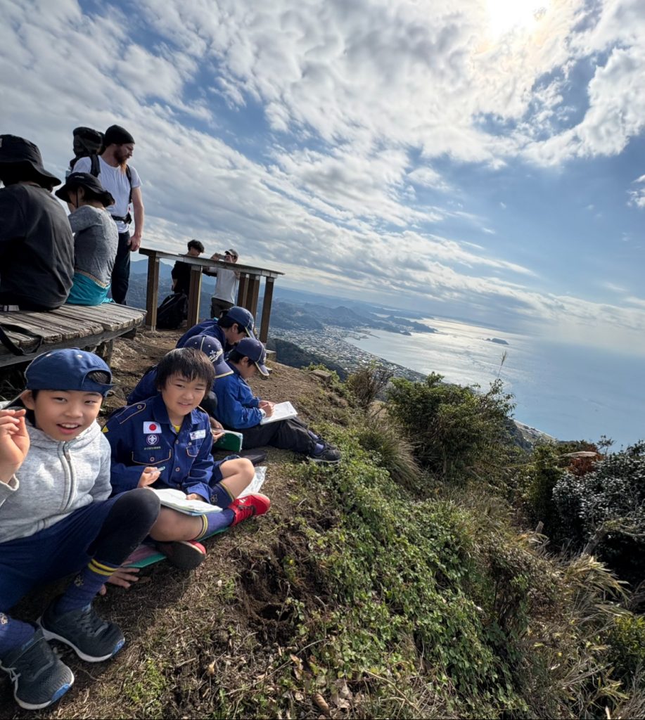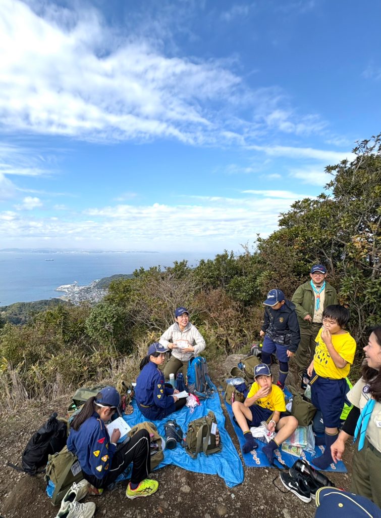 東京湾を臨む展望台に到着!しかし、待っていると聞いていた副長の姿はそこにあらず。先回りしてチケットを買って待つつもりが、スカウト達の方が早かったようです!待つ間に課題の植物観察をしたり、用意してきたカブ弁を食べたり、自然を堪能しました🍙前回学んだ方角は頭に入っているでしょうか??🧭
