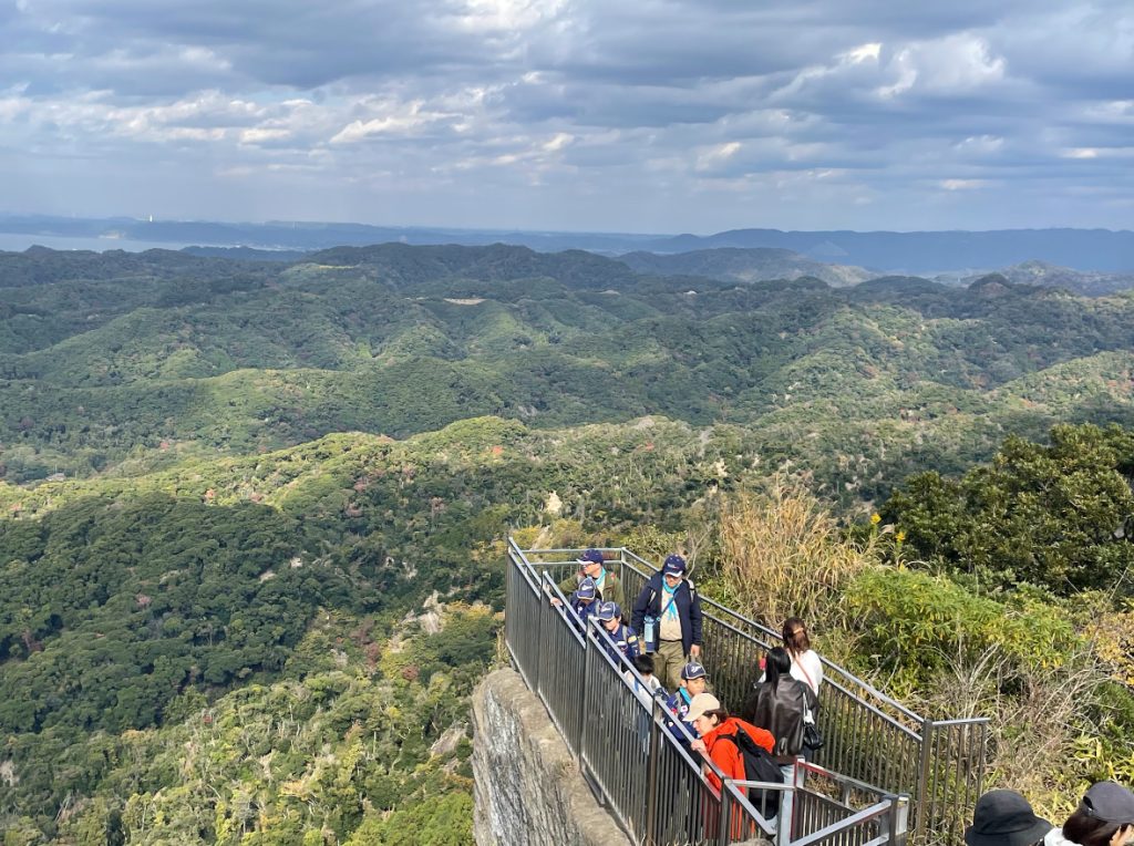 この展望台で、副長からお寺の拝観とロープウェイの乗車チケットを受け取った後は、山中にある日本寺へと歩を進めます。景色が開けたところで「ヤッホー」と声を上げれば、どこからか「ヤッホー」と応じてくれる声もあり、他の登山者とのコミュニケーションを楽しみます。