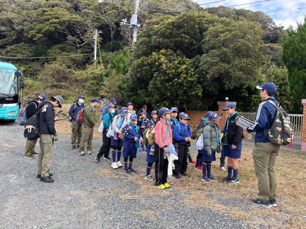 予定よりも早く鋸山の麓の美術館に到着。下車したスカウト達に、行程の確認と参集時刻が手短に告げられ「展望台で待っています」の言葉で説明が締めくくられます。