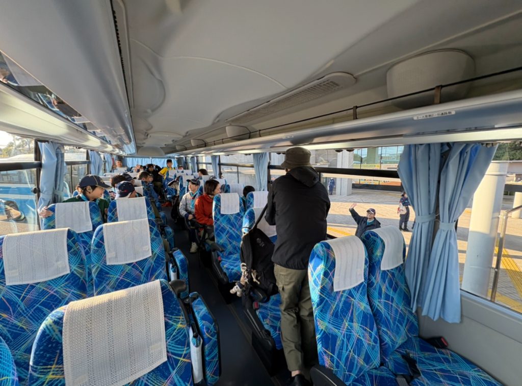 一行を乗せたバスは渋滞もなく順調に進みます。バスの中は、それはそれは賑やかですが…体力は温存しておきましょう!