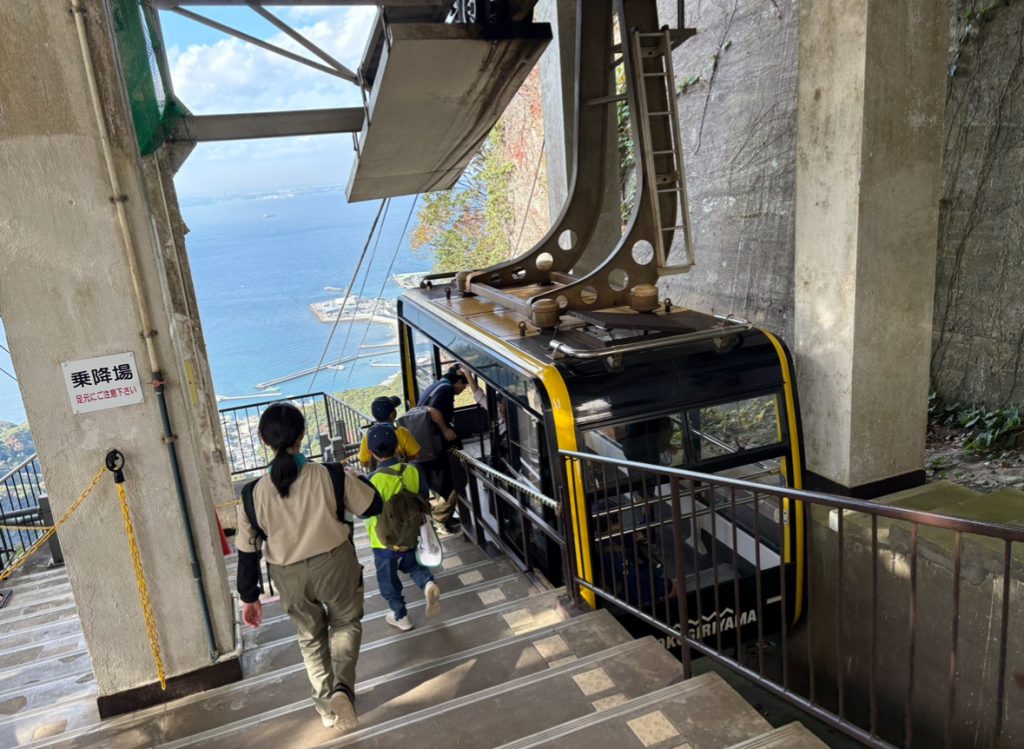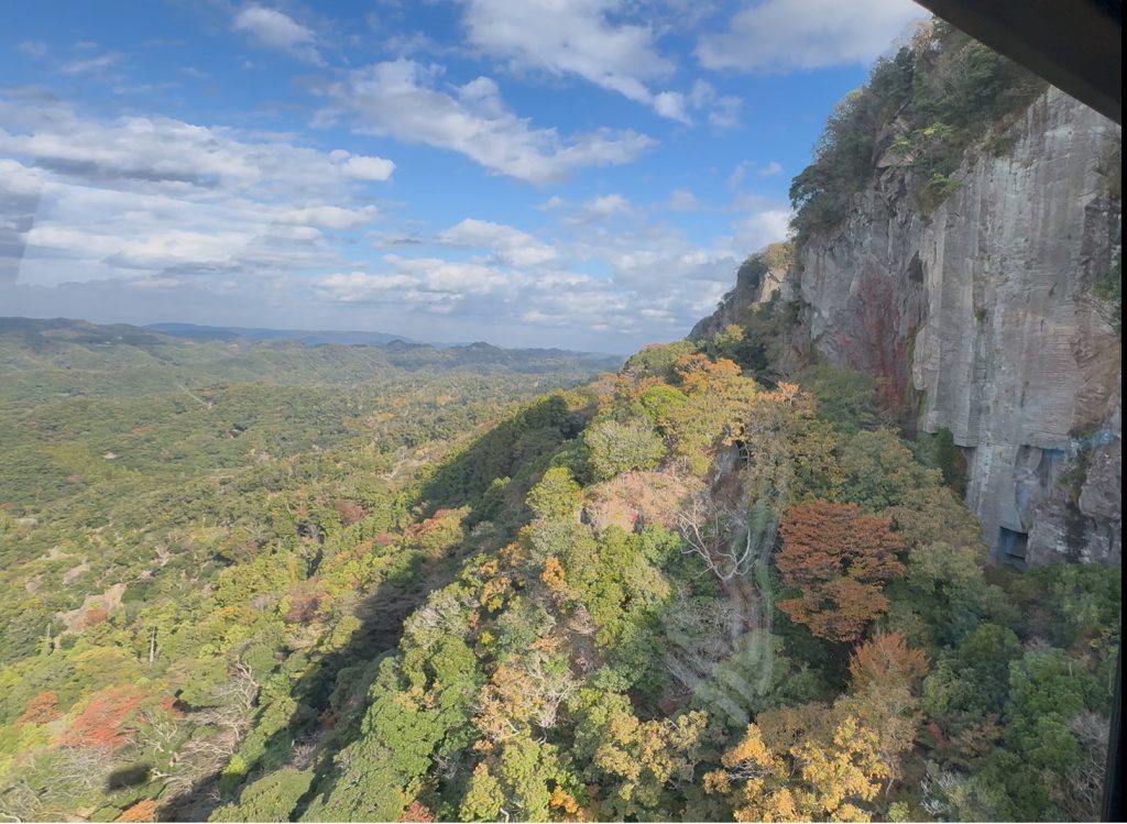 復路はロープウェイで下山。内房の湾を目指して一気に降りていきます。ついさっきまで居た崖と木々の対比がとてもきれい!