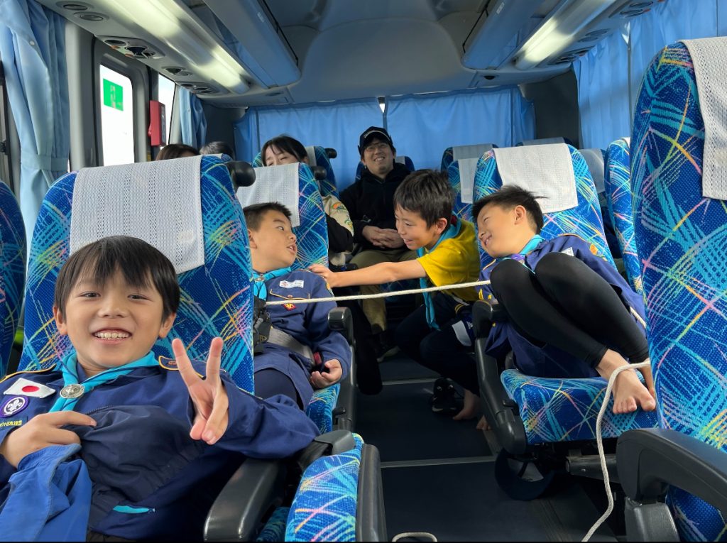 下山した後、再びバスに乗り込みます。帰り道は少し混みましたが、大体予定通り16時過ぎに到着することができました。閉会セレモニーでは、不在のカブ隊長に代わり、ローバー隊長(カブ隊副長兼務)がビシッと締めます。
