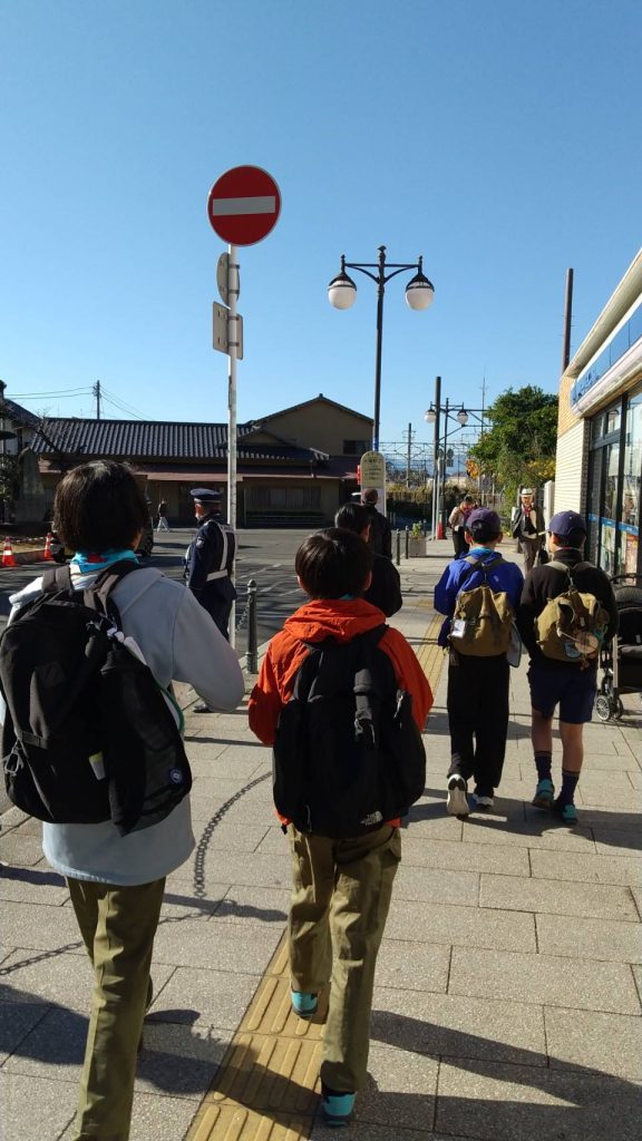 電車を乗り継ぎ、大磯駅から班ごとにハイキング開始