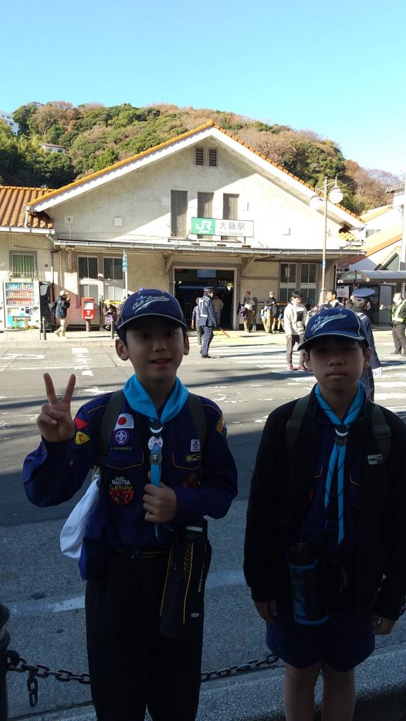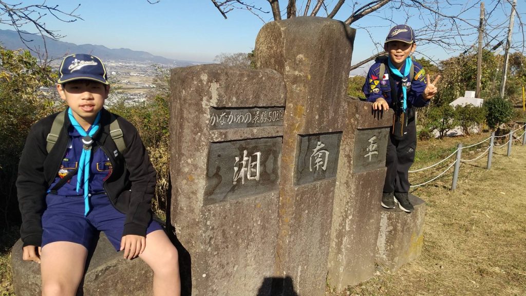 ボーイ隊と一緒にくまスカウトは湘南平へハイキングに行きました。