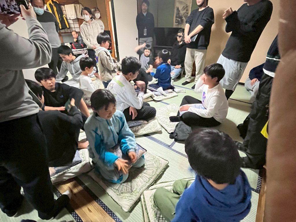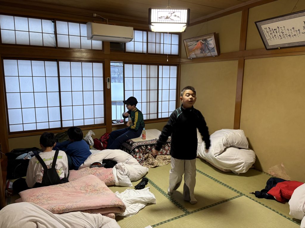 楽しかったレクリエーションの後は就寝です。早くも明日は最終日。大寒波の動向はどうなるか?明日は明日の雪が降る!