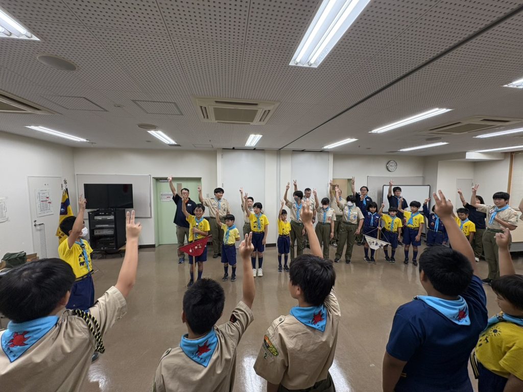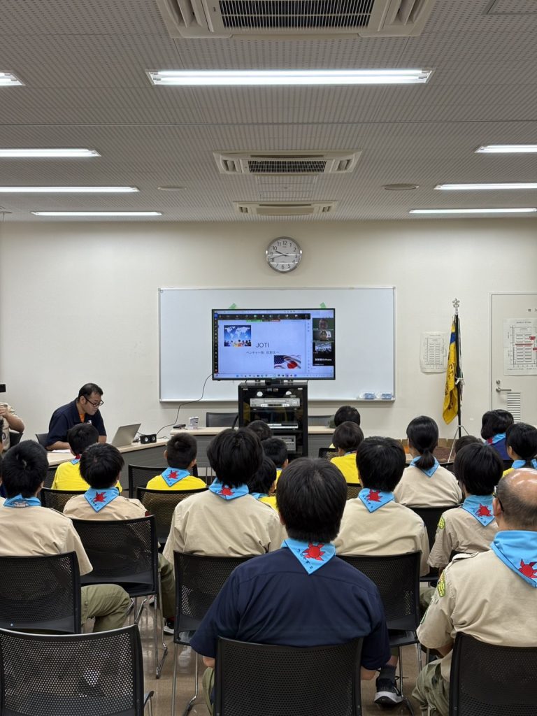 今回の活動は、ボーイ隊と合同でのJOTIです!「JOTI(ジョティ)」とは、Jamboree On The Internet(ジャンボリー・オン・ジ・インターネット) の略。国際交流を深め、友情や協力の輪を広めることを目的として、世界中のスカウトとチャットやビデオ通話で交流します。早速、U字体形で集まります。