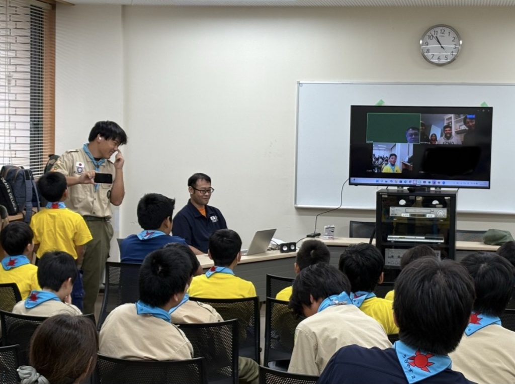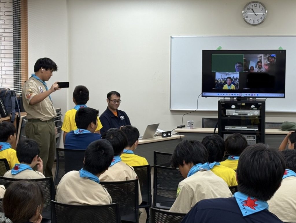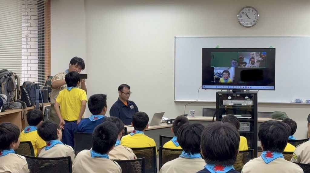 この日、今年訪問した台湾のスカウトたちとの交流も検討していましたが、残念ながら都合が合わず(後日、日を改めて交流することができました!)。それでも、アメリカに留学中の先輩スカウトとインターネットでつながり、現地での暮らしの様子、日本との違いなどについて、お話を頂くことができました!