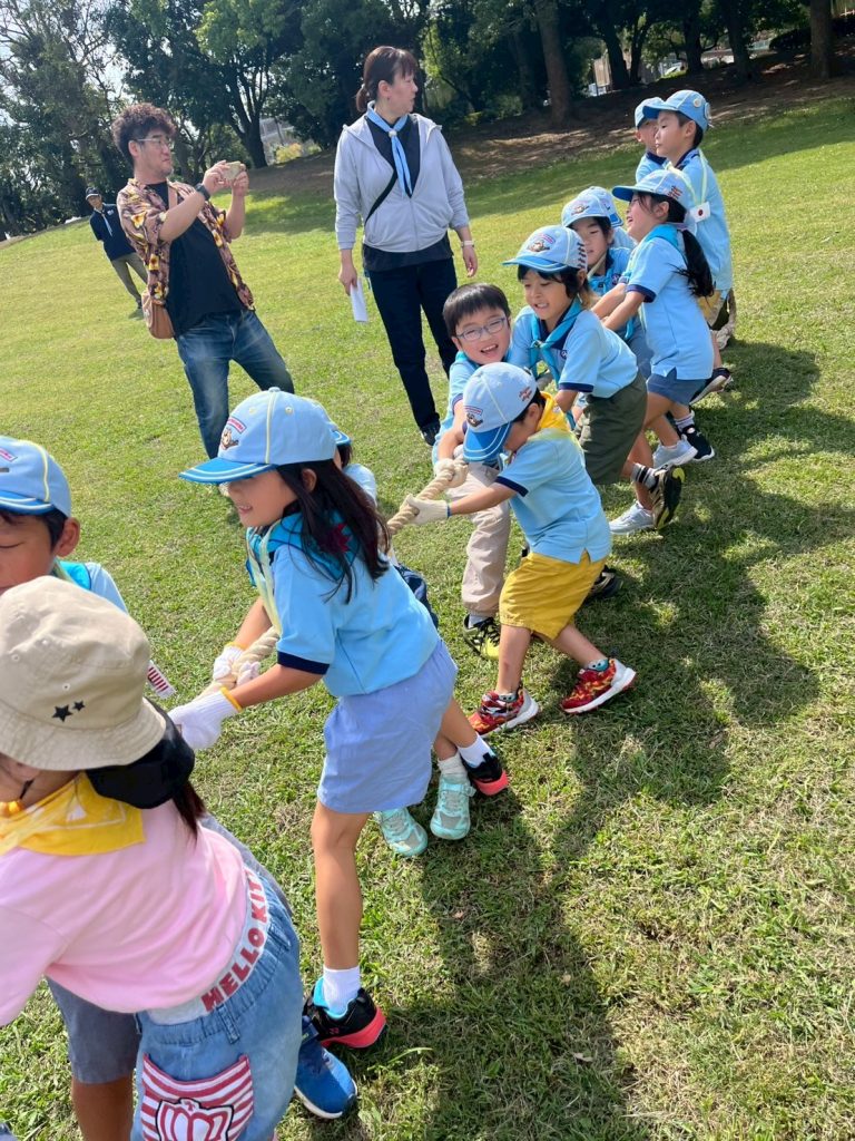 アクションソングからはじまって、猛獣がりならぬ国名がり、尻尾とりならぬ国旗とりなどなど、開催中の大阪万博にちなんだゲームで思いっきりからだを動かしましたね。恒例のつな引きもアツい勝負となりました!